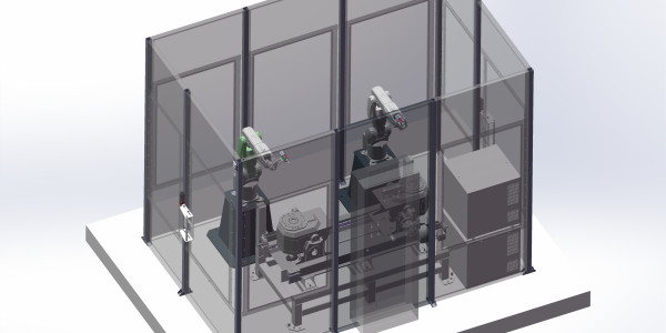Odstraňování otřepů na odlitcích pomocí robota a pneumatické odjehlovací frézky.
