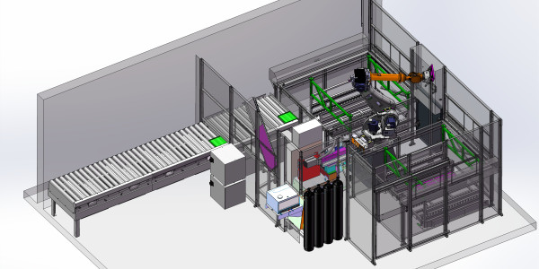 Robotické pracoviště svařovacího automatu výroby panelů je určeno ke svaření, manipulaci a paletizaci karosérií nízkoteplotních elektrických topných panelů. Manipulace probíhá pomocí robota a příslušných dopravníků. Svařování probíhá pomocí svařovacího automatu.